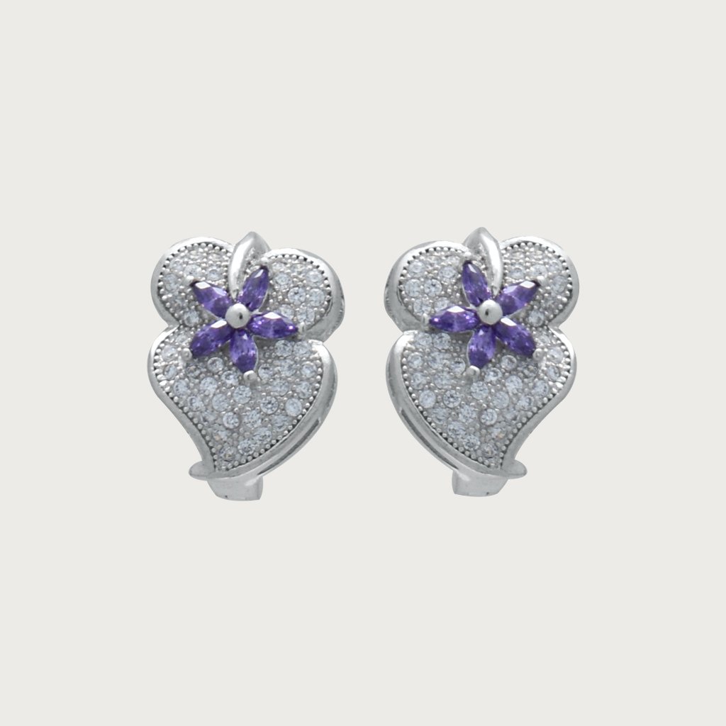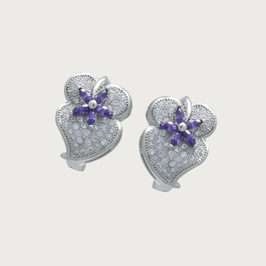 Aretes Flor con Destellos de Circonia Azul de Plata de ley 925