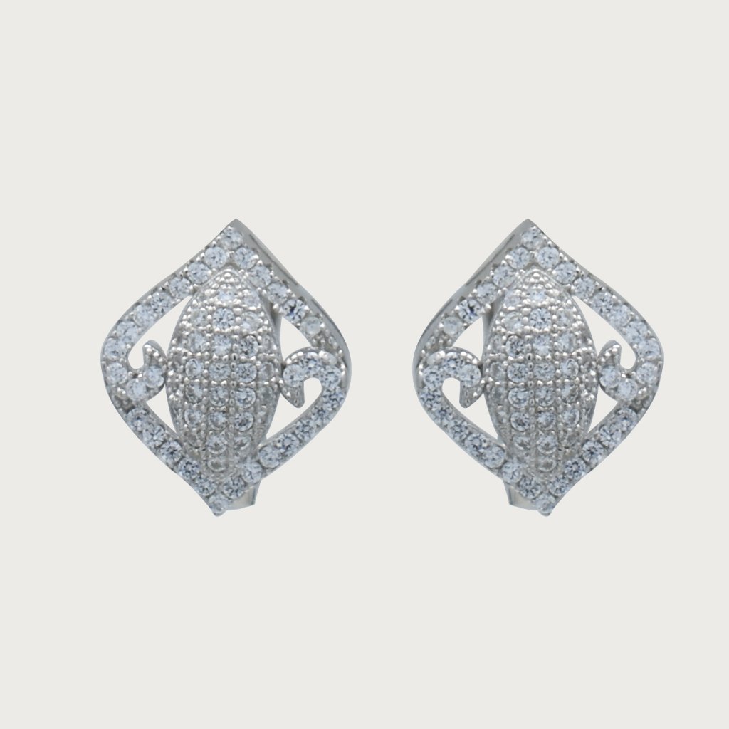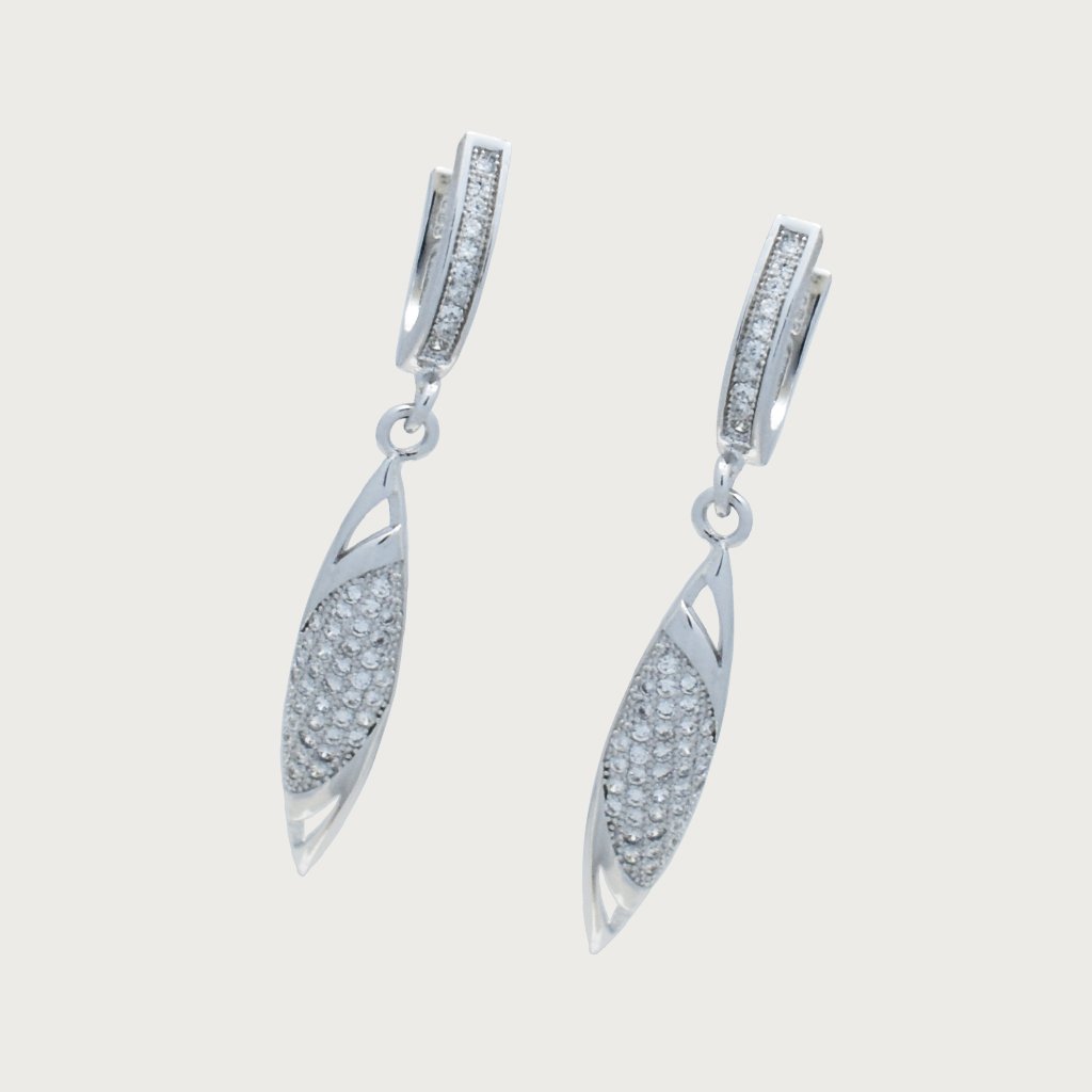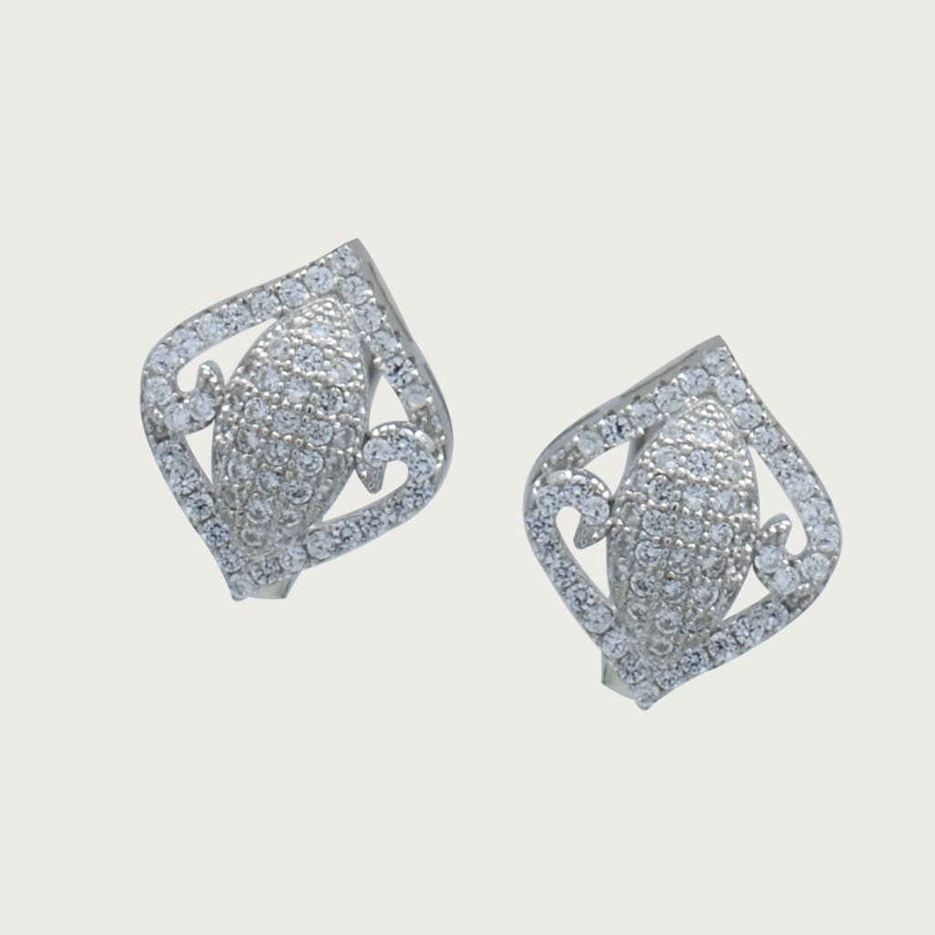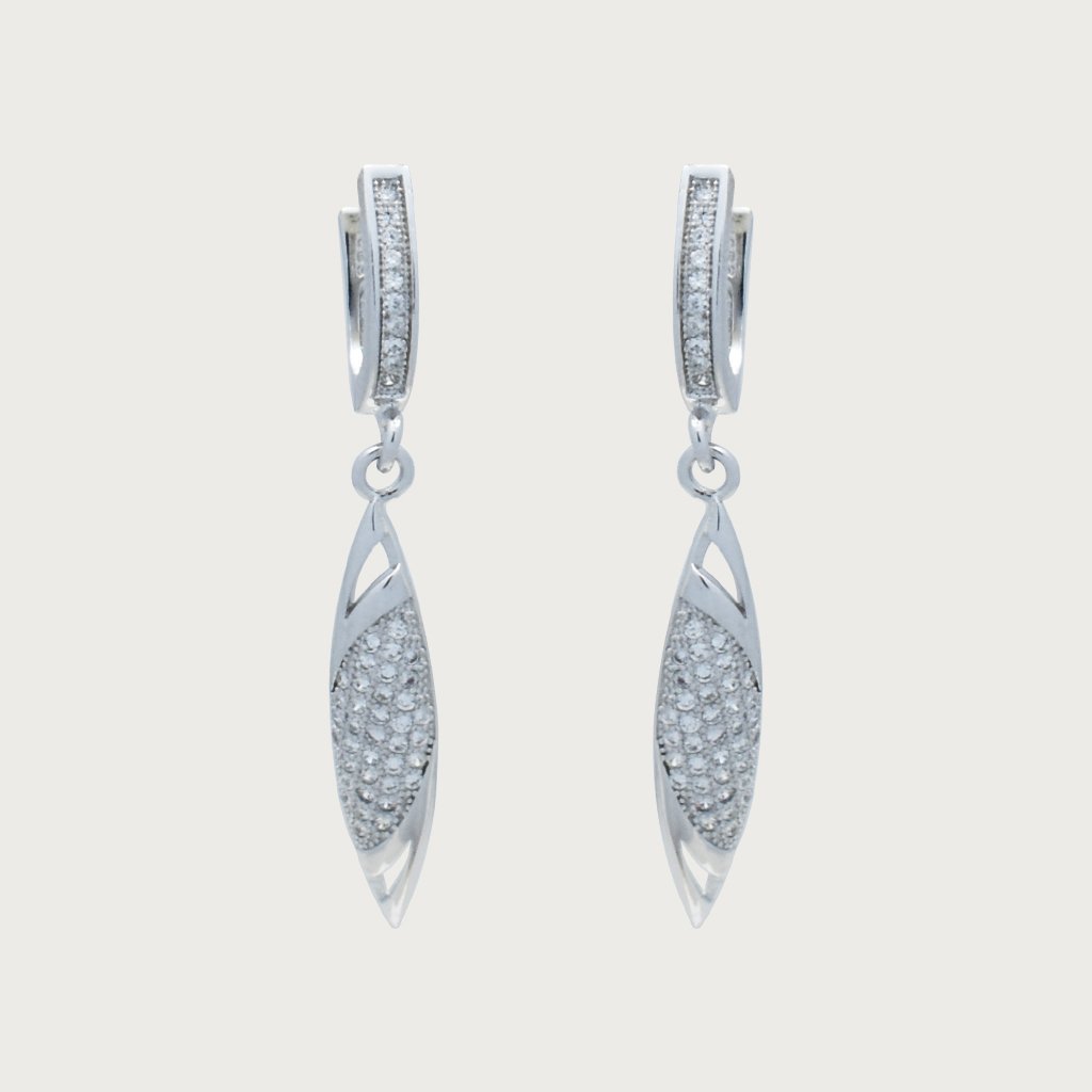 Hermosos Aretes con Circonia y Perla Blanca de Plata Italiana 925 de ley