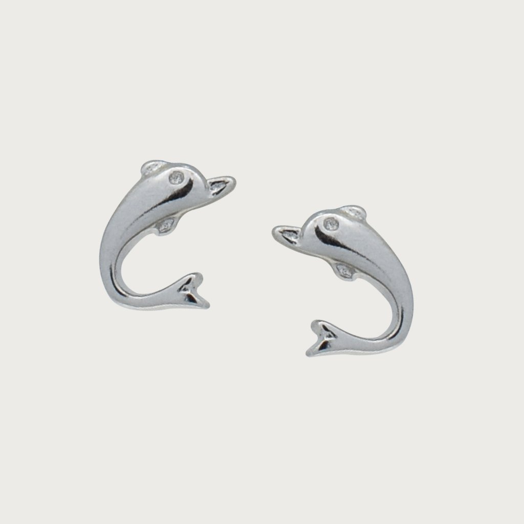 Elegancia Marina Aretes de Delfín de Plata Italiana de ley 925