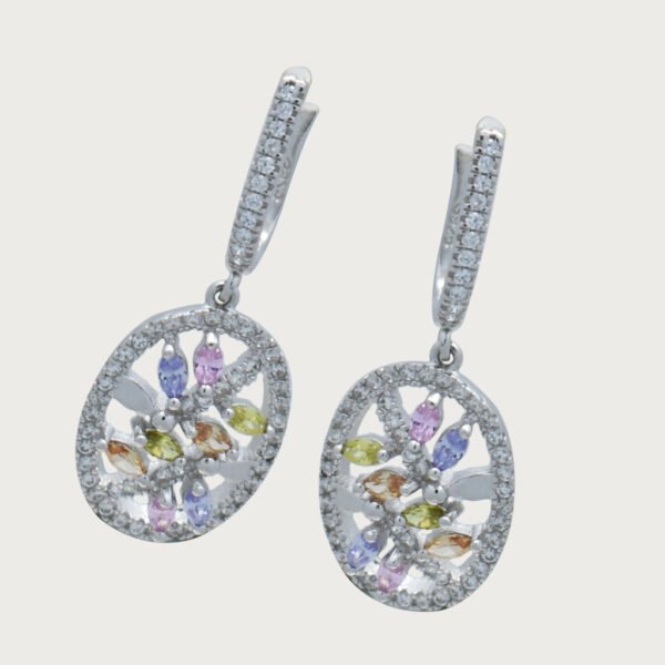 Aretes Diseño Floral Multicolor Italianos de Plata de ley 925