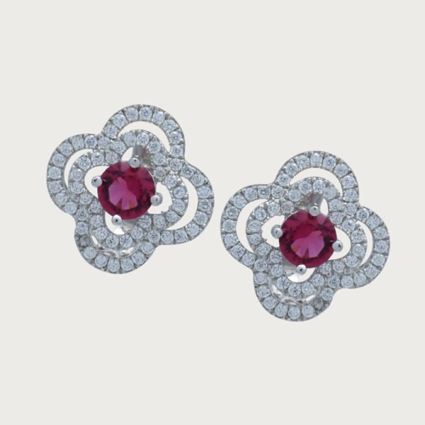 Aretes Florales con Circonia Roja de Plata Italiana 925 de Ley