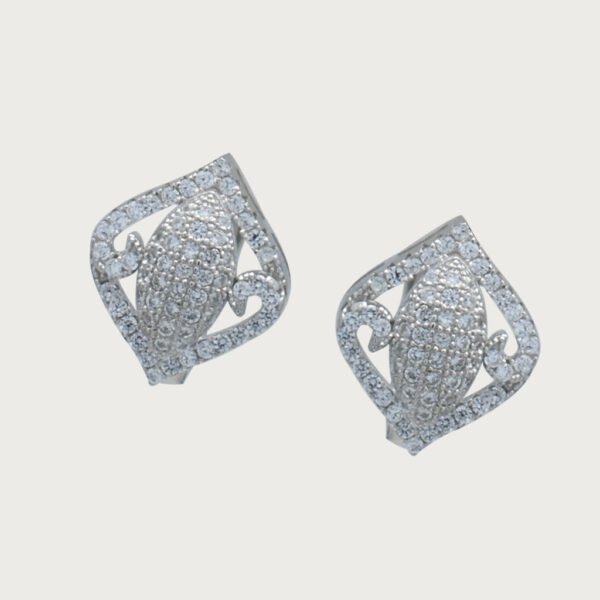 Sumérgete en el mundo del glamour con estos hermosos aretes elaborados de plata de ley 925 con un elegante baño de rodio. Su diseño, adornado con piedras de circonia, captura la mirada y refleja una belleza atemporal ideal para que tu ocasión sea especial. Los intrincados detalles que desafían las formas tradicionales te convertirán en el centro de todas las miradas.